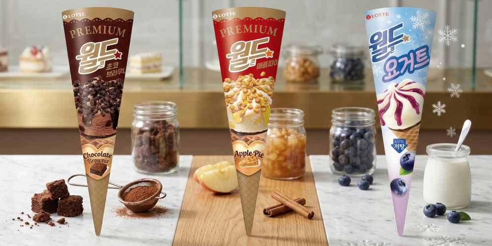 - ’프리미엄 월드콘 애플파이’, ’프리미엄 월드콘 초코브라우니’, ’월드콘 요거트’ 3종 출시