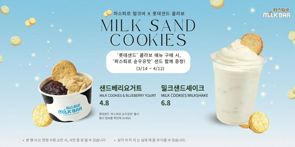 롯데웰푸드 파스퇴르의 디저트 카페 ‘파스퇴르 밀크바’에서도 롯샌을 활용한 시즌 한정 컬래버 메뉴를 만나볼 수 있다. 롯샌 파스퇴르 순우유맛을 곁들인 ‘밀크샌드 쉐이크’와 ‘샌드베리 요거트’ 등 총 2종의 메뉴를 오는 3월 14일부터 4월 12일까지 한정 운영한다. 한정 메뉴를 주문하면 롯샌 신제품을 함께 증정하는 선착순 이벤트도 진행할 예정이다.